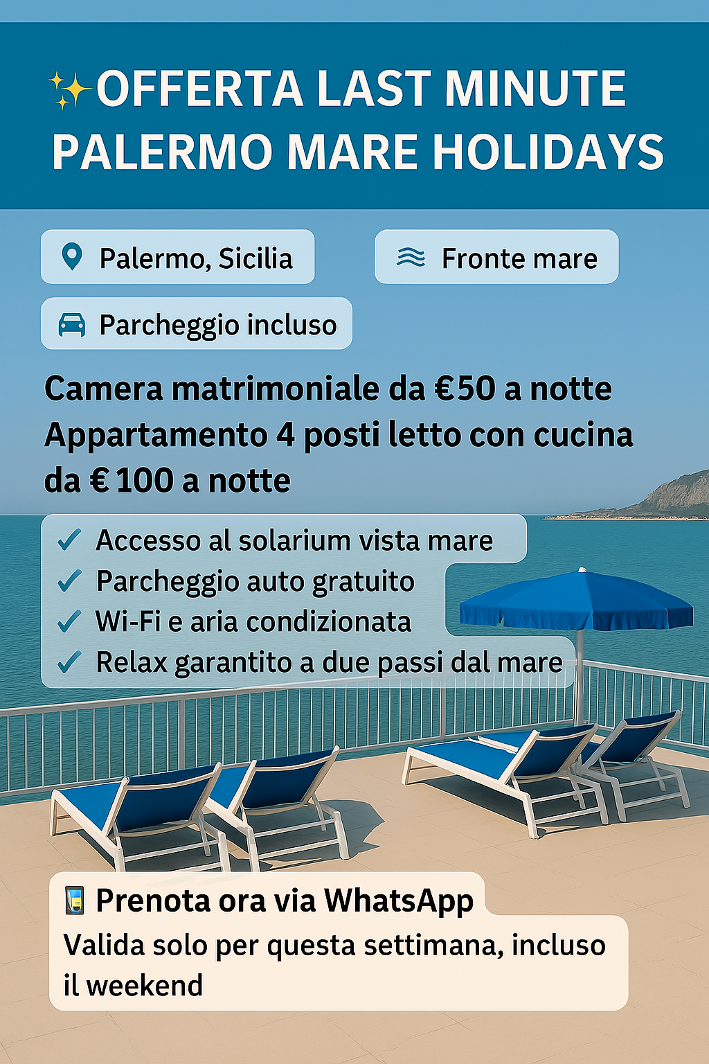✨ Offerta Last Minute a Palermo Fronte Mare – Da €50 a Notte! ✨